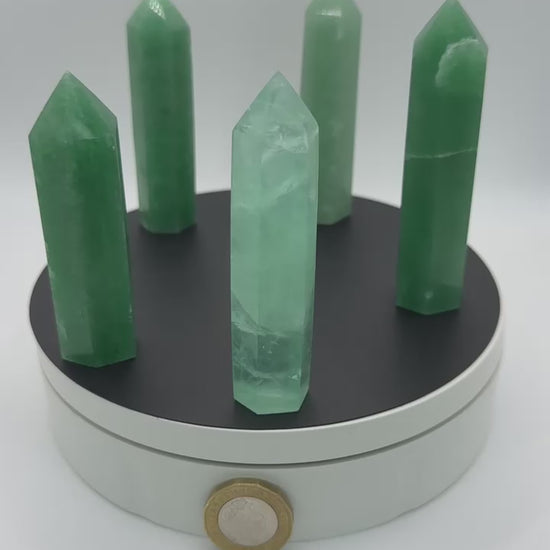 These Green Aventurine Towers display a soothing green hue with subtle natural shimmer, polished into sleek points that highlight their gentle beauty. Compact and vibrant, they are perfect for carrying, displaying, or incorporating into crystal practices.
