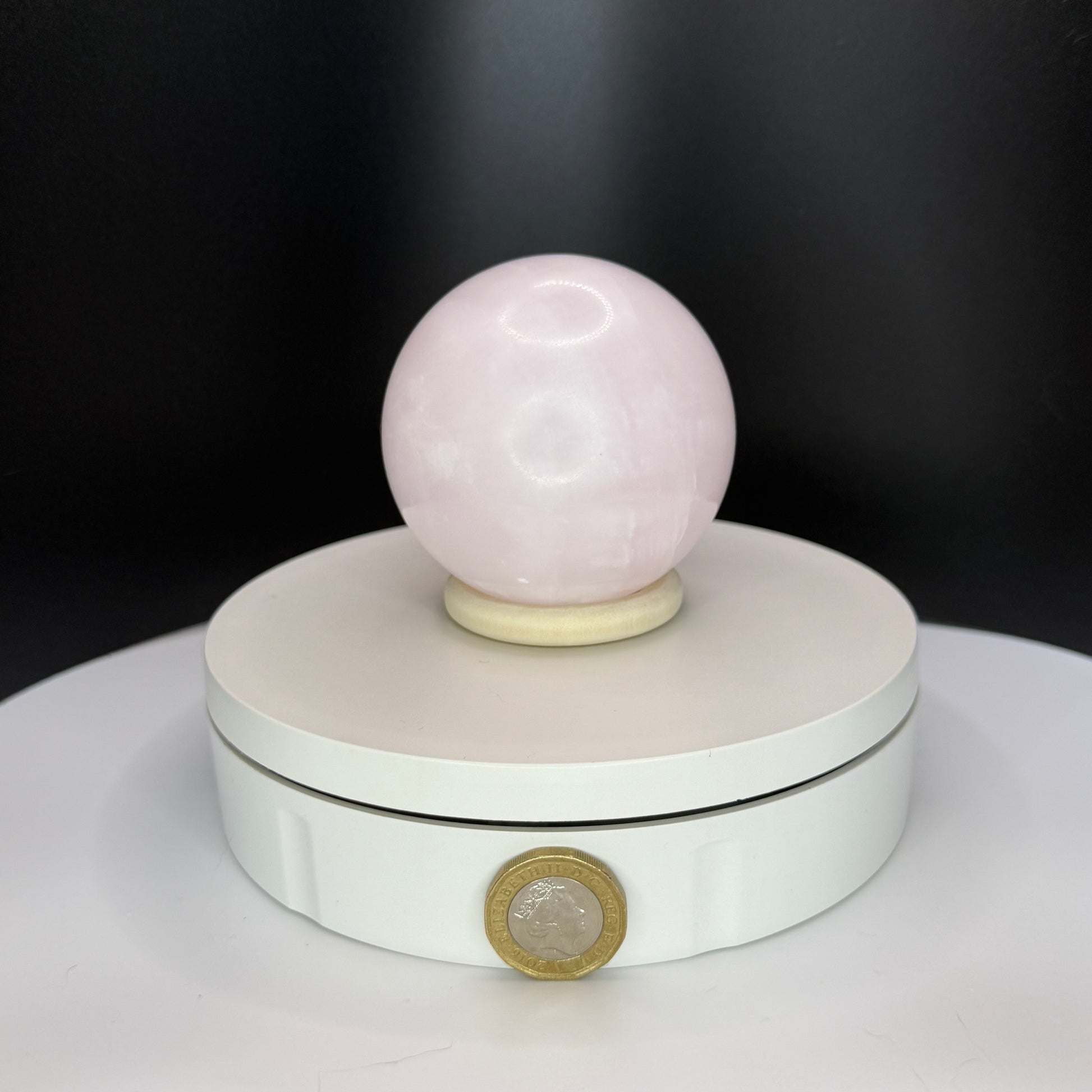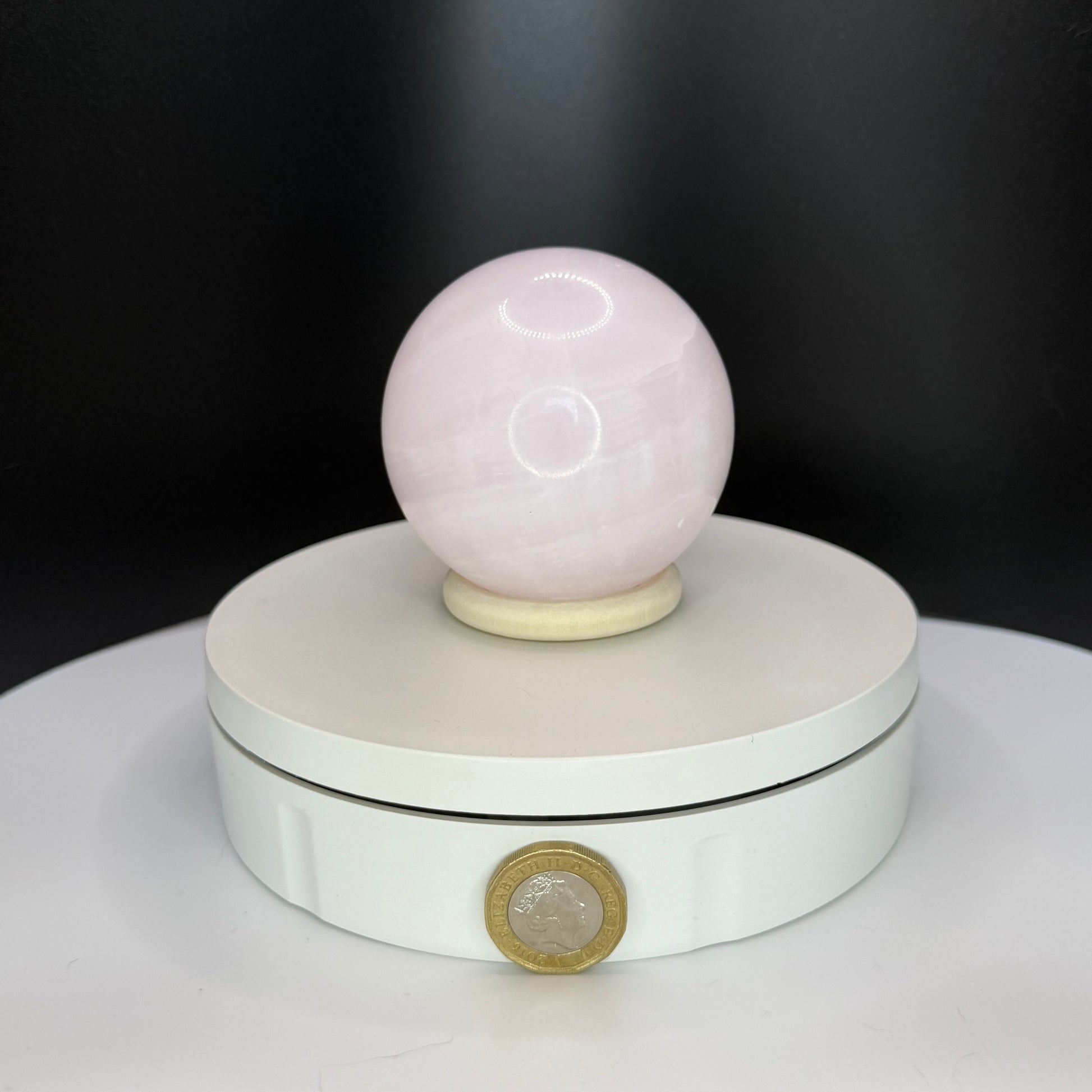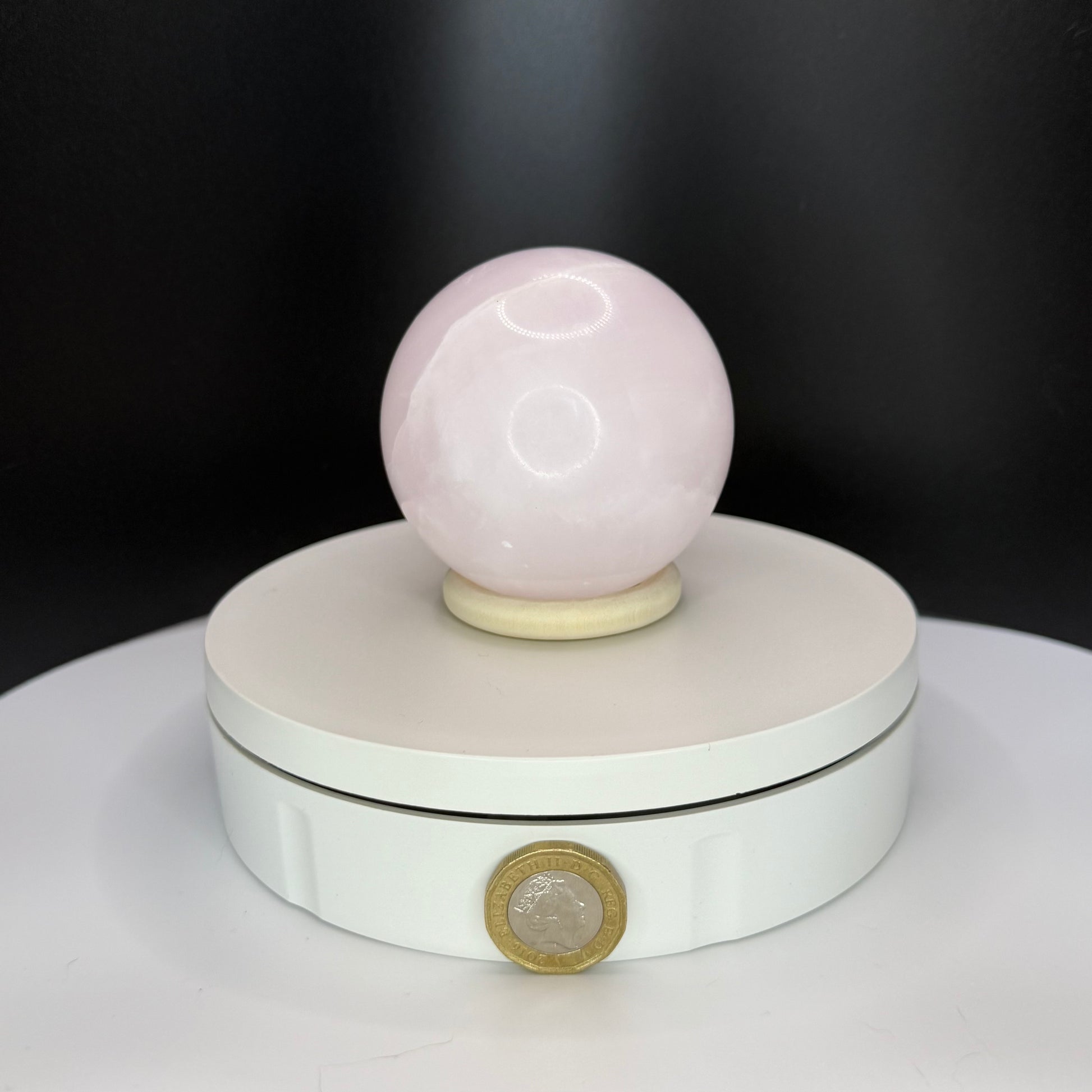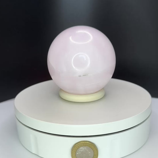 This Pink Calcite Sphere shows soft blush tones with gentle banding and a glossy, light-catching polish that gives a soothing glow in any space. This listing is for the exact piece shown in the image.