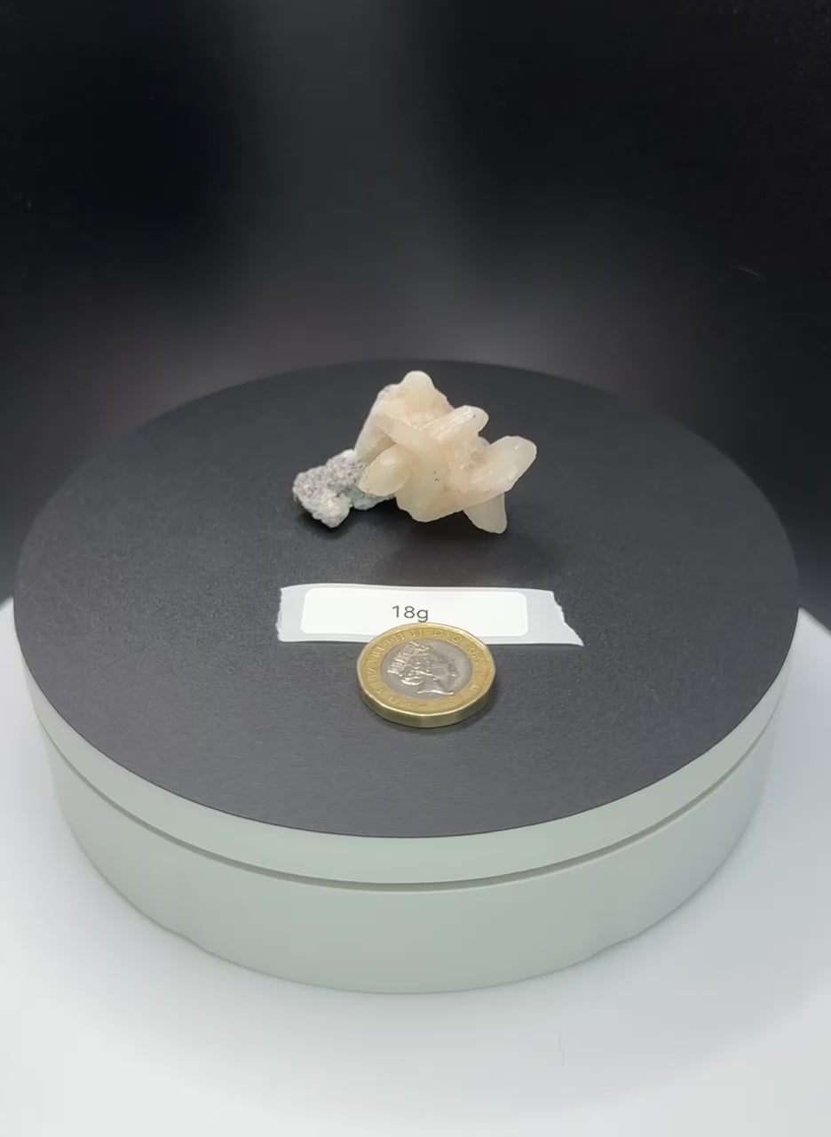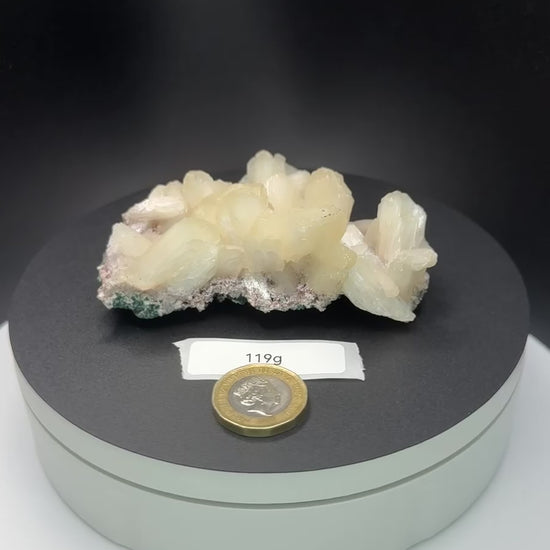 Stilbite belongs to the zeolite family, forming in clusters with a natural shimmering luster. Its peach to cream colouring makes each specimen visually unique and highly collectable.